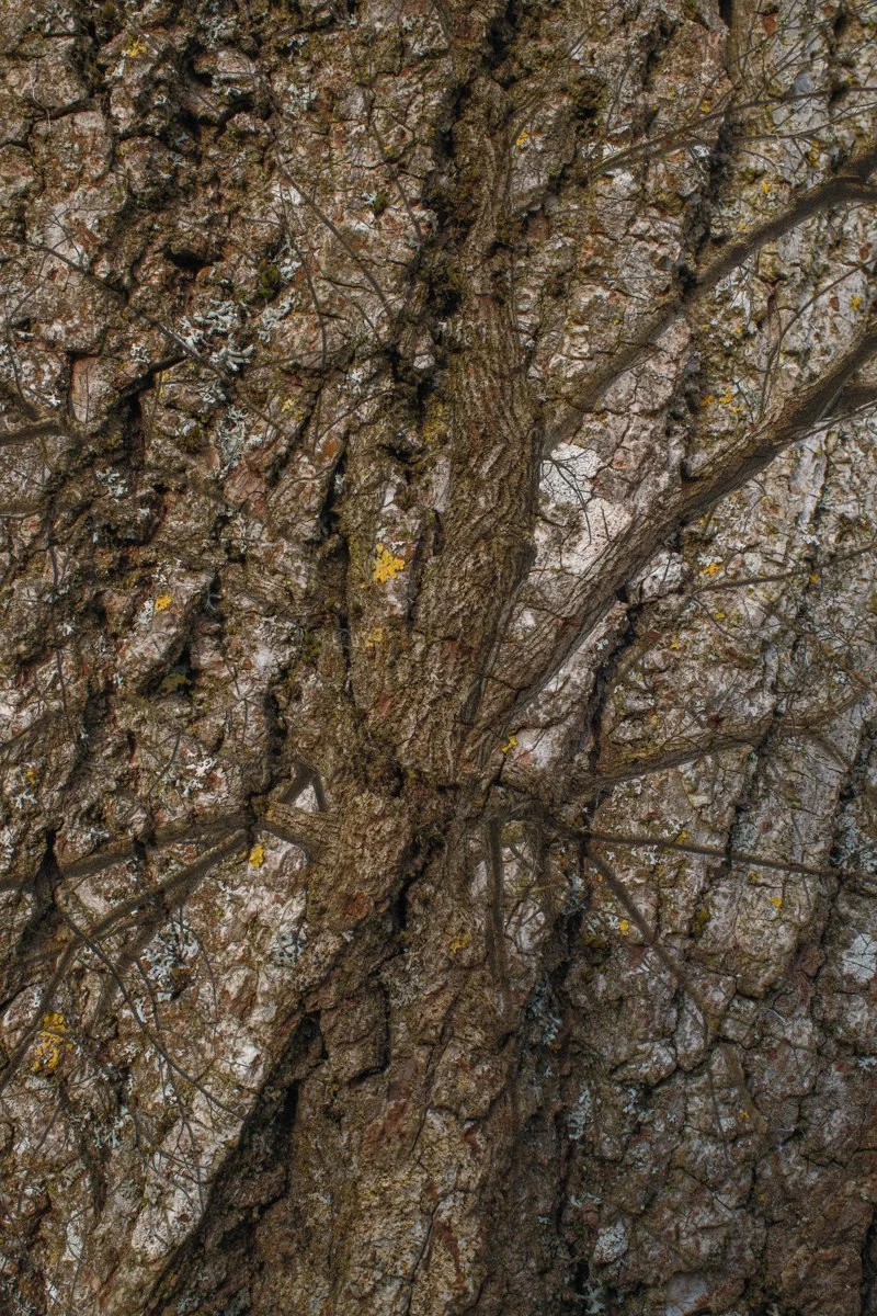 An exercise in capturing my views from tree climbing with dual-exposure shots of the bark in front of my face, and the canopy from the same vantage. It’s probably got legs…